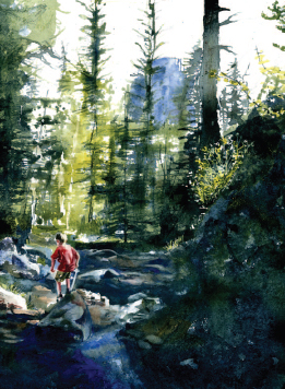 watercolor can be put down in thin washes or intense color, dry brush